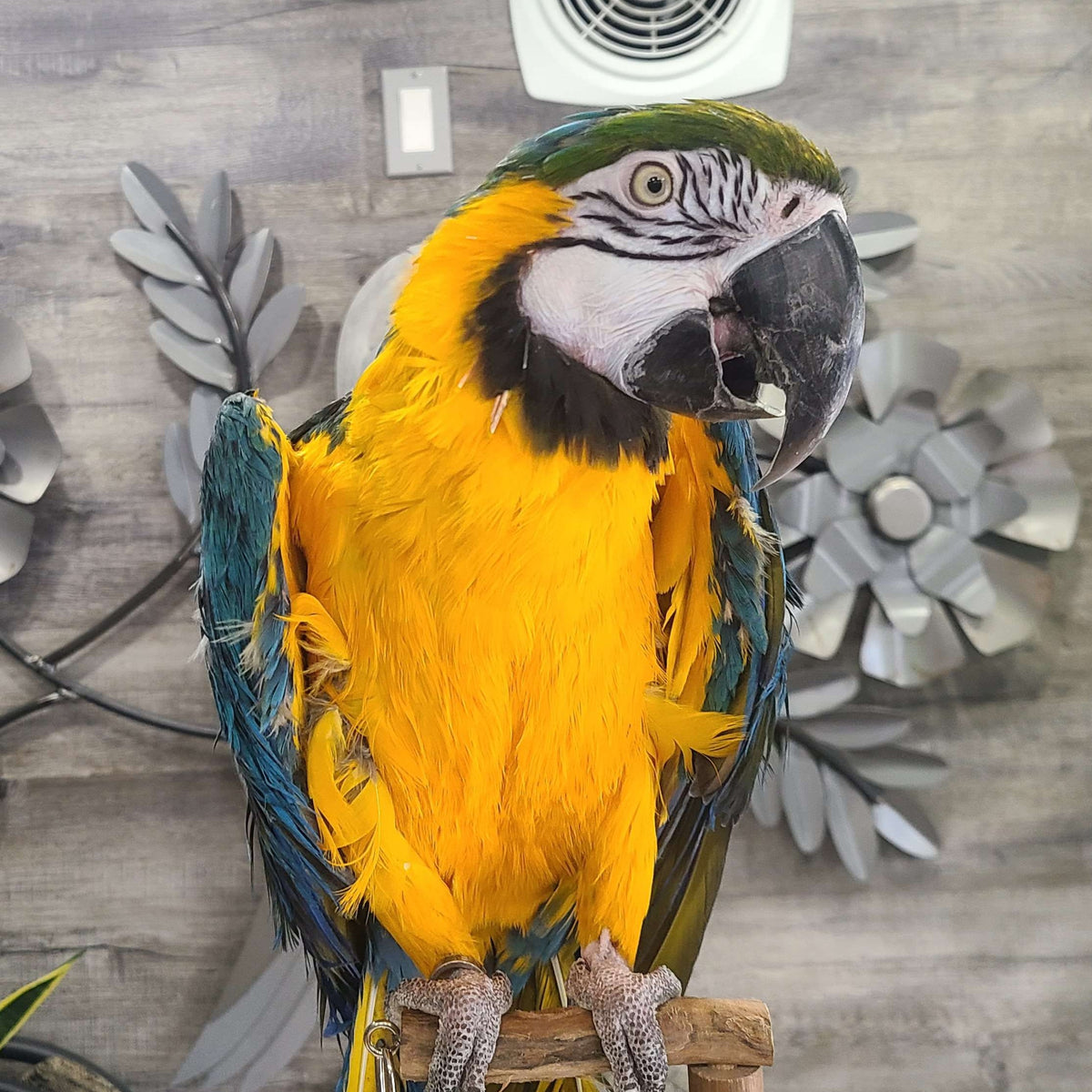 I am an energetic macaw looking for new flock mates. At 14 years old, I am still quite young with decades ahead of me. I am used to a home with other pets and large dogs, so an active environment is familiar. I am a big bird, a home with appropriate bird experience is a must!
